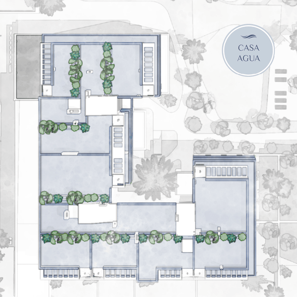 CASA AGUA verfügt, zusätzlich zum Kellergeschoss mit der Tiefgarage, über drei Wohnetagen mit Penthäusern in der 3. Etage sowie dazugehörigen Dachterrassen.