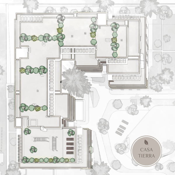 CASA TIERRA hat insgesamt vier Etagen. Im obersten Geschoss befindet sich neben den Penthäusern mit Dachterrassen auch ein Rooftop-Gym mit Meerblick.